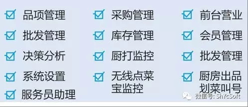 1,前臺管理 支持開臺,轉臺,并臺,拆分,加臺,宴會開臺,消臺等系列餐桌操作;提供點菜,沽清,贈送,掛起,叫起,催菜,做法,加料,換菜,劃菜,特價、贈送、促銷,預定,外賣;收銀,交班,日結,經(jīng)理查詢,前臺會員充值。