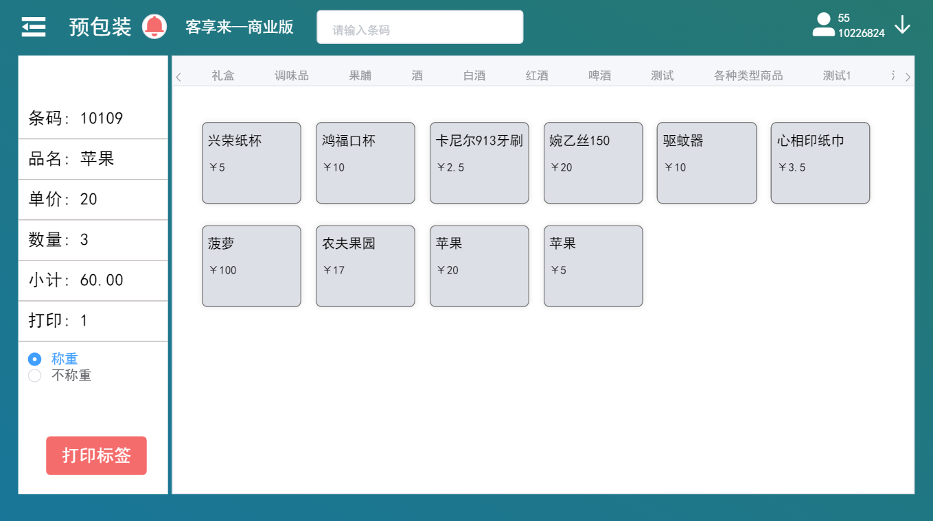 生鮮商品稱重后打印標(biāo)簽,上貨架擺放銷售,可節(jié)省一臺(tái)條碼秤